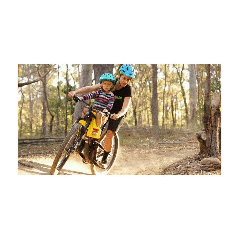 The forward position of the Feva Star Seat on the frame offers more space between you and your child, so you can enjoy the ride with little hinderance to the pedal stoke and a reduced need to pedal with bowed legs.