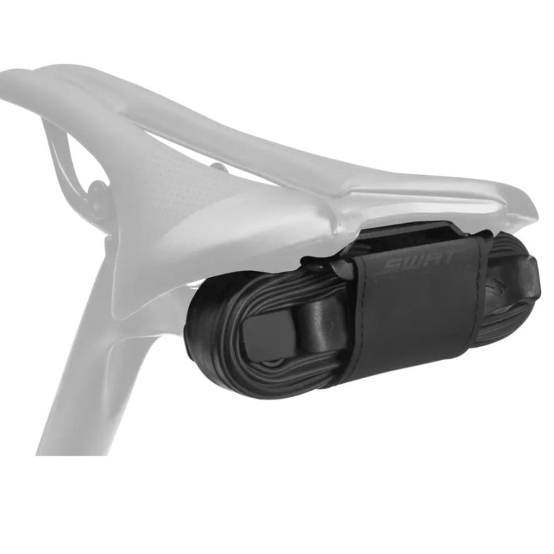 So you like to keep your rig running minimalist but practical? Maybe you prefer to tape a spare tube and CO2 to your frame to keep the profile and weight low? The Bandit is the best of both worlds in terms of simplicity and utility for mountain riders. Its compact form bolts under your SWAT compatible saddle and features a simple Velcro strap with individual compartments for tube CO2 and tire lever. One rip of the strap and you're in with easy to access everything you need to fix a flat in the middle of a race when time is of the essence. Specialized Mountain Bandit in Black/Mountain