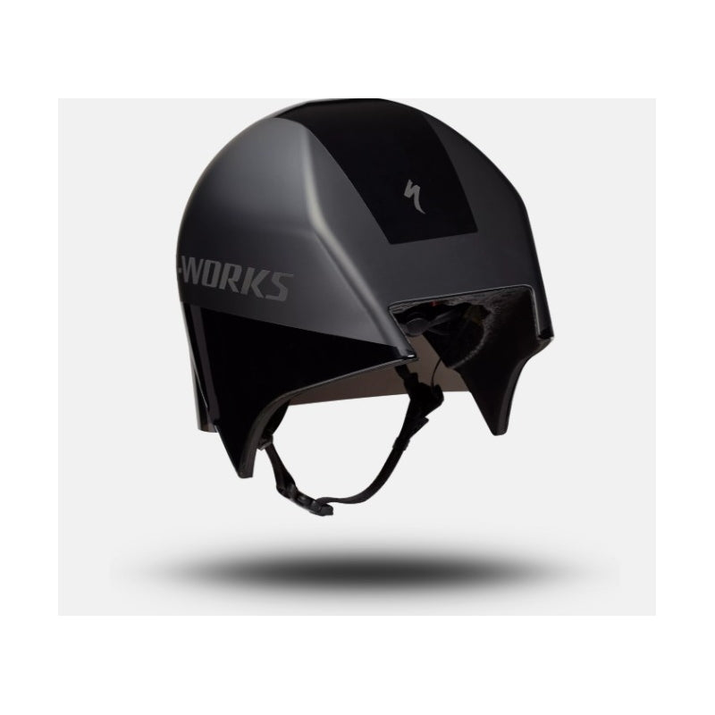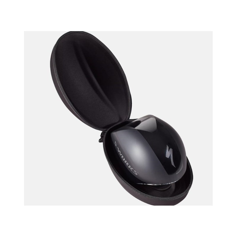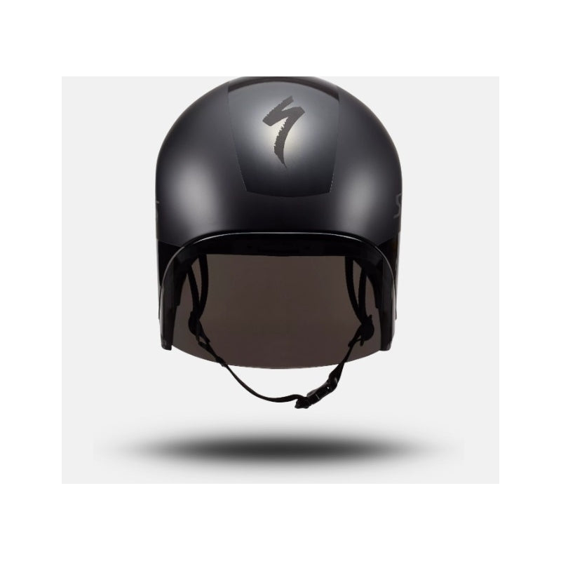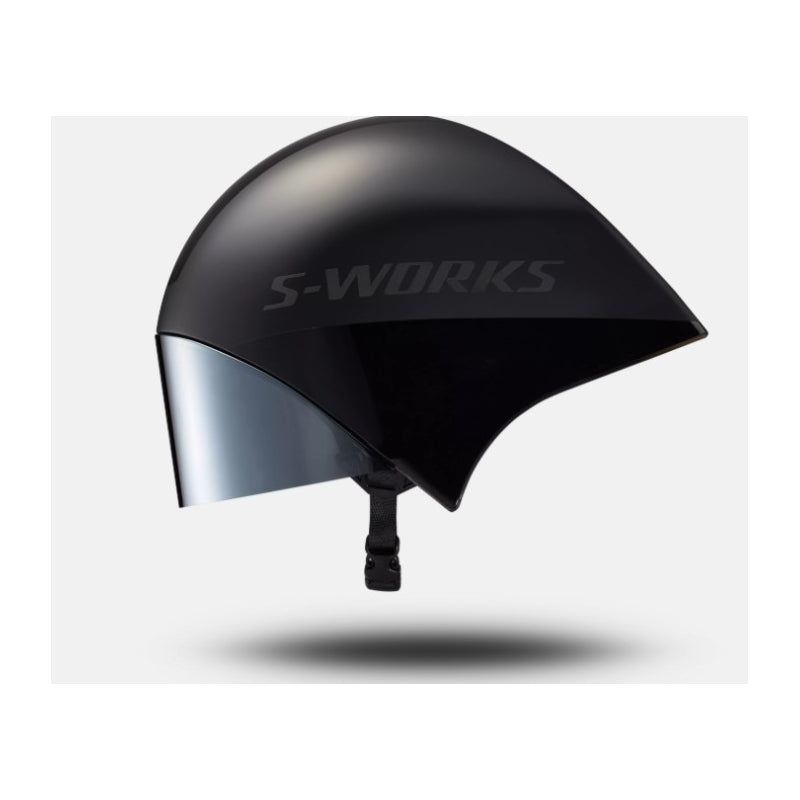 The S-Works TT 5 helmet comes equipped with a Class 1 optics shield for zero distortion when looking down the road, unlike traditional lenses that are typically drape-formed with clear plastic. The shield has a hydrophobic coating to help clear moisture away if the weather turns bad on race day, as well as a high-grade (EN166) anti-fog coating.